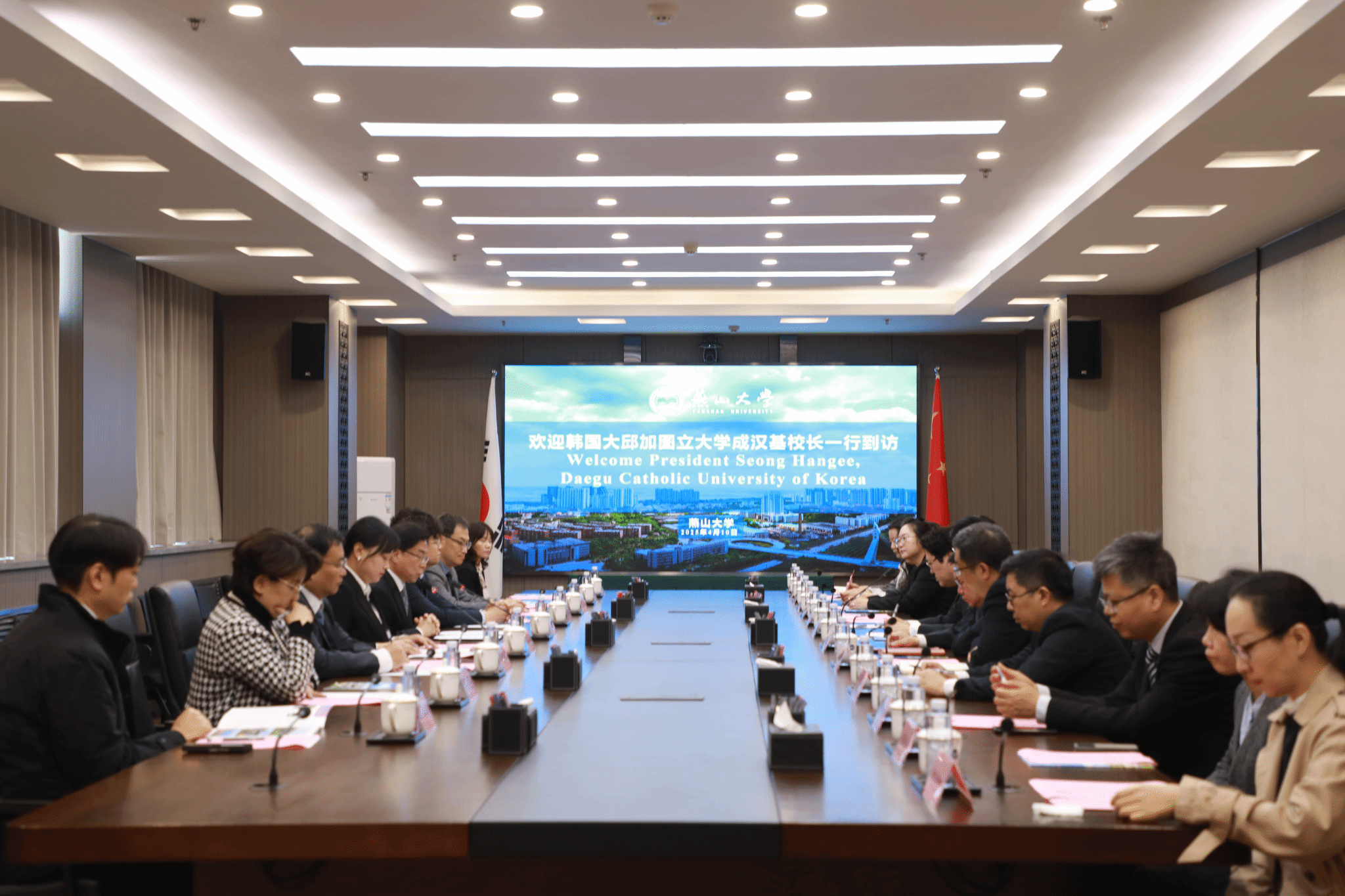 双方在友好氛围中介绍了各自校史与优势学科。燕山大学作为中国知名工科高校,在教育、科研领域成果显著;大邱加图立大学创立于1914年,历史悠久,在艺术疗愈、医学、科技等领域建树颇丰。双方一致认为两校优势互补,在音乐认知科学与人工智能国际科研合作方面极具前景,同时还对艺术疗愈和康养产业的合作方向进行了前瞻性的交流。