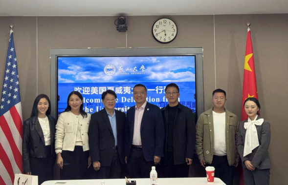 10月23日下午,檀香山市市长友城联络员、夏威夷中华总商会前会长刘广义(Jeff Lau)率美国夏威夷大学代表团一行3人访问燕山大学,秦皇岛市外事商务局三级调研员刘文阁等2人陪同来访。双方在世纪楼1315国际综合会议室举行座谈会,就两校未来合作方向及秦皇岛市与檀香山市友好合作前景进行了深入交流。燕山大学国际合作处处长陆军、工作人员高晓娜等人出席会议。